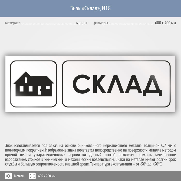 Знак «Склад», И18 (металл, 600х200 мм) в Кызыле купить
