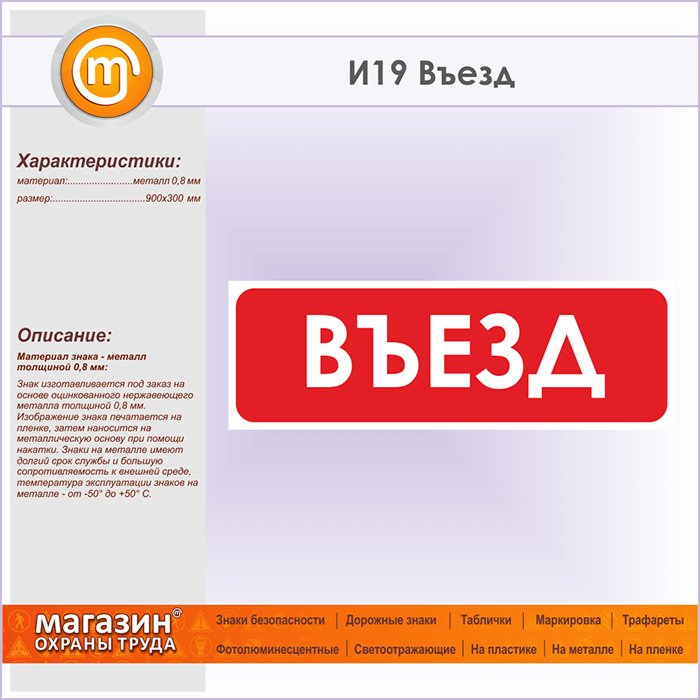 Знак «Въезд», И19 (металл, 900х300 мм) в Кызыле купить
