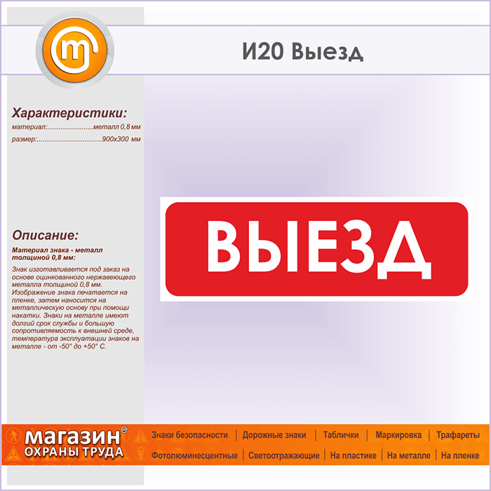 Знак «Выезд», И20 (металл, 900х300 мм) в Кызыле купить