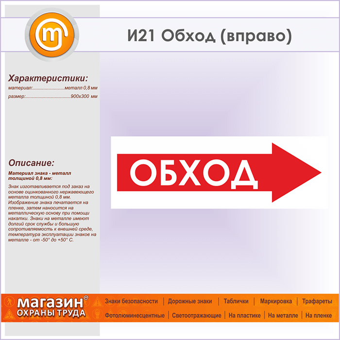Знак «Обход (вправо)», И21 (металл, 900х300 мм) в Кызыле купить