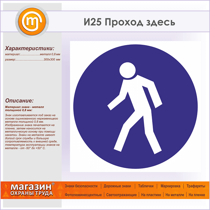 Знак «Проход здесь», И25 (металл, 300х300 мм) в Кызыле купить