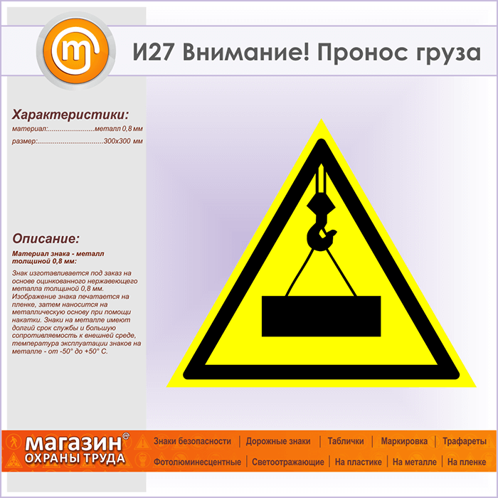 Знак «Внимание! Пронос груза», И27 (металл, сторона 300 мм) в Кызыле купить