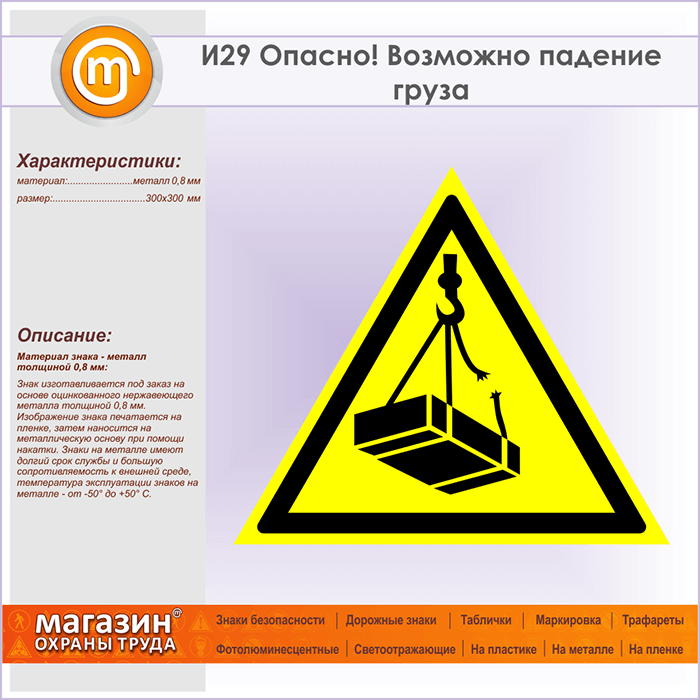 Знак «Опасно! Возможно падение груза», И29 (металл, сторона 300 мм) в Кызыле купить