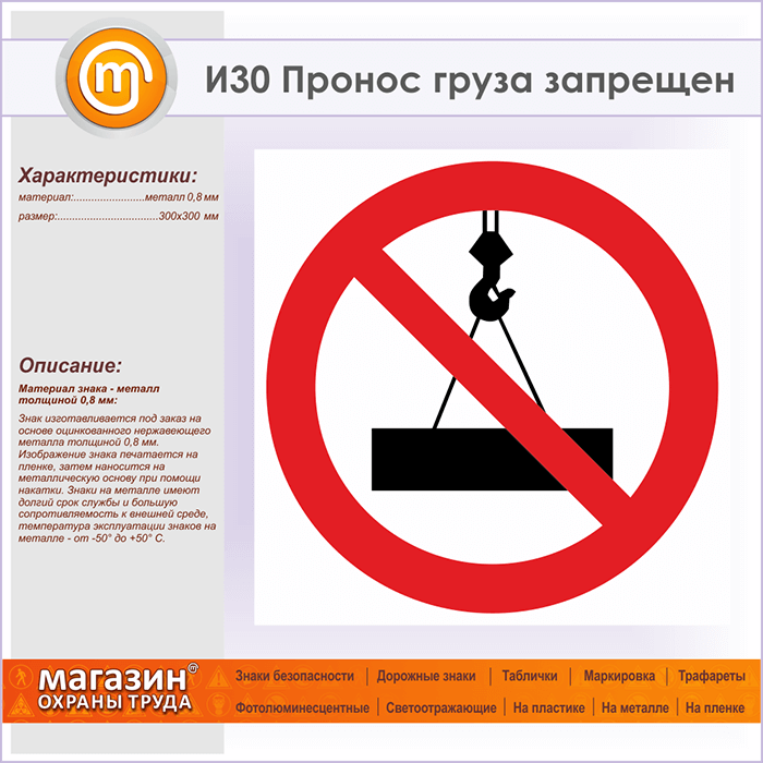 Знак «Пронос груза запрещен», И30 (металл, 300х300 мм) в Кызыле купить