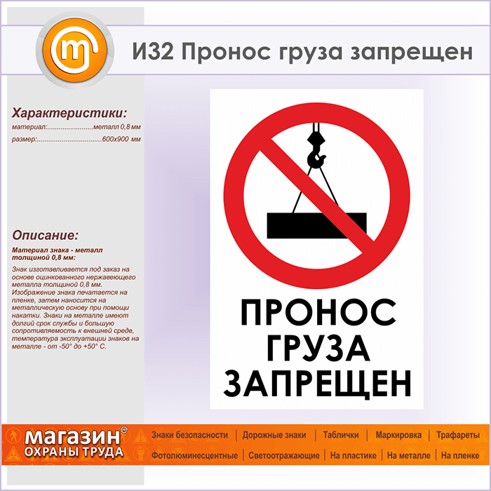 Знак «Пронос груза запрещен», И32 (металл, 600х900 мм) в Кызыле купить