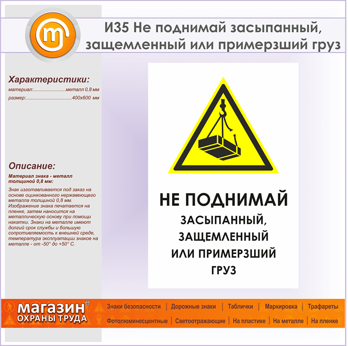 Знак «Не поднимай засыпанный, защемленный или примерзший груз», И35 (металл, 400х600 мм) в Кызыле купить