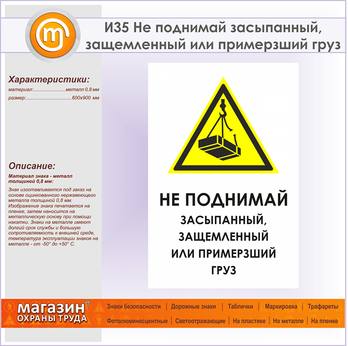 Знак «Не поднимай засыпанный, защемленный или примерзший груз», И35 (металл, 600х900 мм) в Кызыле купить