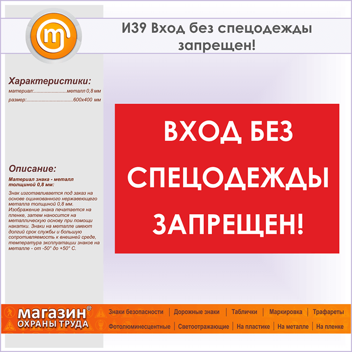 Знак «Вход без спецодежды запрещен!», И39 (металл, 600х400 мм) в Кызыле купить