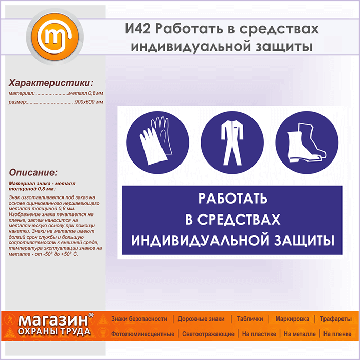 Знак «Работать в средствах индивидуальной защиты», И42 (металл, 900х600 мм) в Кызыле купить