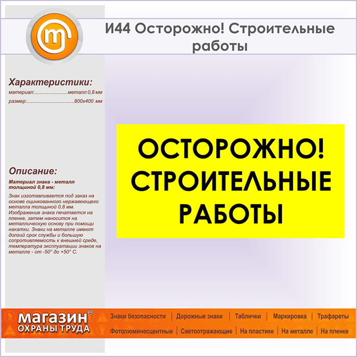 Знак «Осторожно! Строительные работы», И44 (металл, 800х400 мм) в Кызыле купить