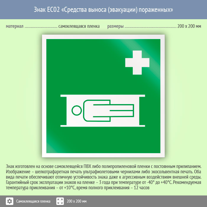 Знак EC02 «Средства выноса (эвакуации) пораженных» (пленка, 200х200 мм) в Кызыле купить