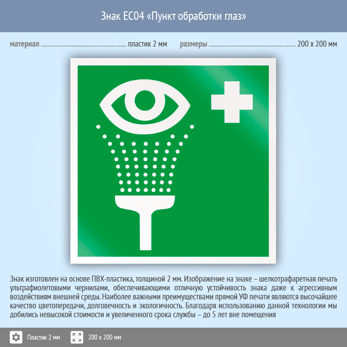 Знак EC04 «Пункт обработки глаз» (пластик, 200х200 мм) в Кызыле купить