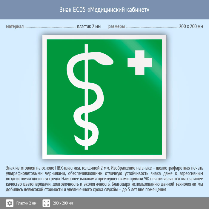 Знак EC05 «Медицинский кабинет» (пластик, 200х200 мм) в Кызыле купить