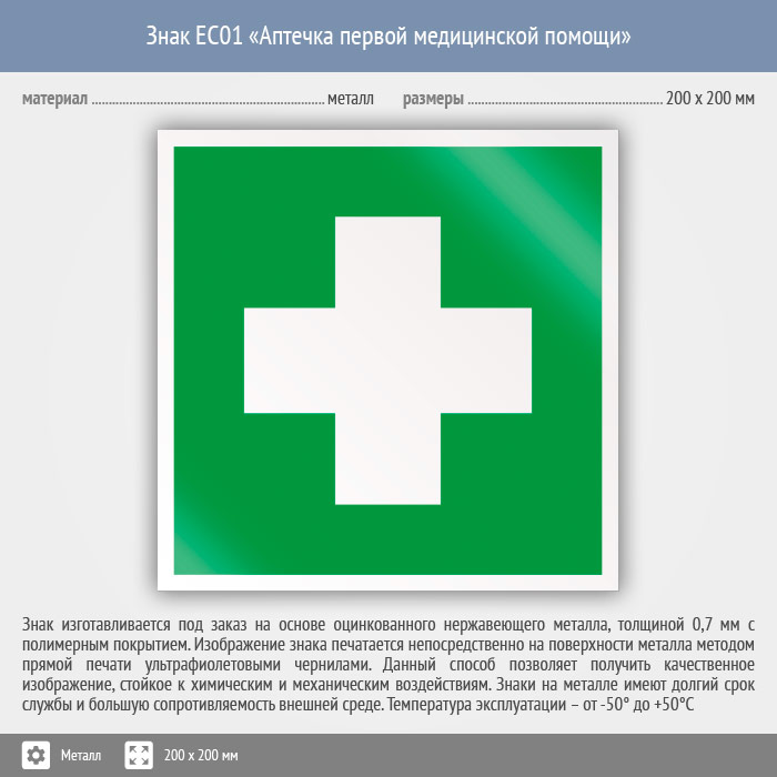 Знак EC01 «Аптечка первой медицинской помощи» (металл, 200х200 мм) в Кызыле купить