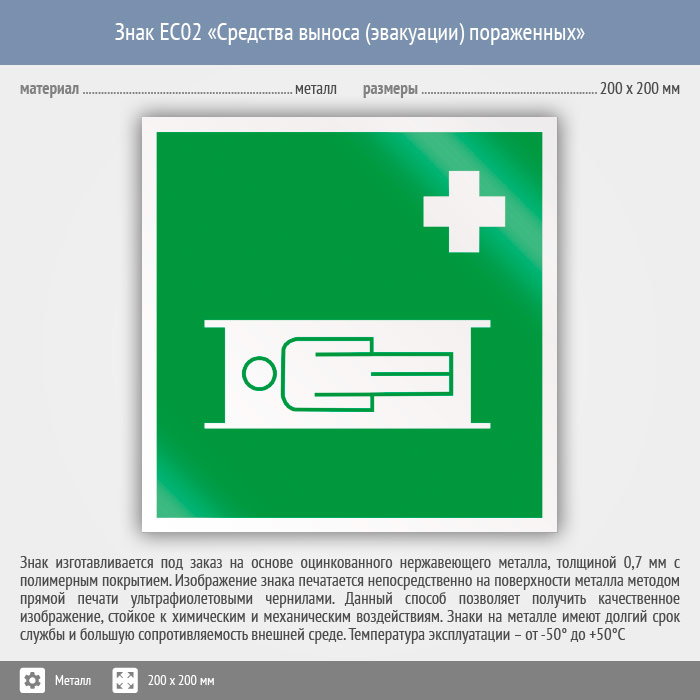 Знак EC02 «Средства выноса (эвакуации) пораженных» (металл, 200х200 мм) в Кызыле купить