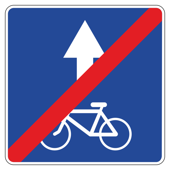 Дорожный знак 5.14.3 «Конец полосы для велосипедистов» (металл 0,8 мм, II типоразмер: сторона 700 мм, С/О пленка: тип Б высокоинтенсивная) в Кызыле купить