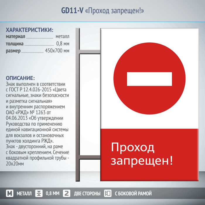 Знак «Проход запрещен!», GD11-V (двусторонний вертикальный, 450х700 мм, металл, на раме с боковым креплением) в Кызыле купить