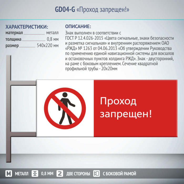 Знак «Проход запрещен!», GD04-G (двусторонний горизонтальный, 540х220 мм, металл, на раме с боковым креплением) в Кызыле купить