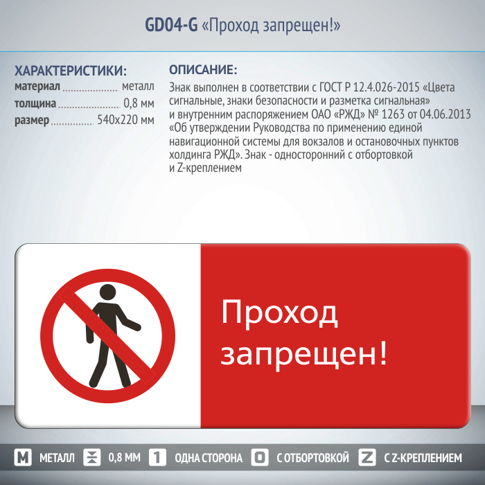 Знак «Проход запрещен!», GD04-G (односторонний горизонтальный, 540х220 мм, металл, с отбортовкой и Z-креплением) в Кызыле купить