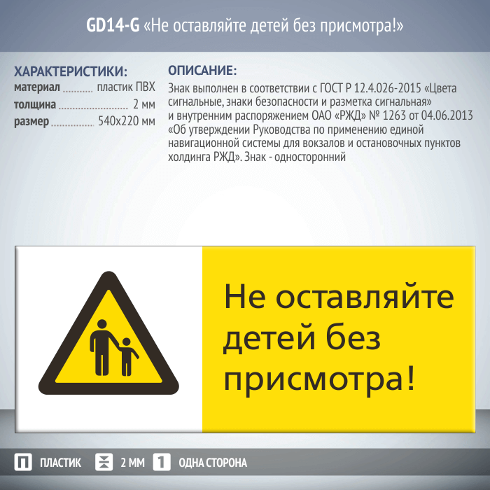 Знак «Не оставляйте детей без присмотра!», GD14-G (односторонний горизонтальный, 540х220 мм, пластик 2 мм) в Кызыле купить