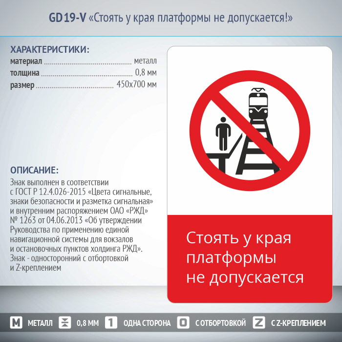 Знак «Стоять у края платформы не допускается!», GD19-V (односторонний вертикальный, 450х700 мм, металл, с отбортовкой и Z-креплением) в Кызыле купить