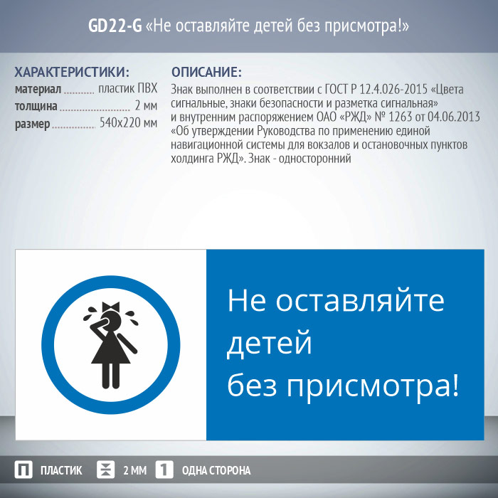 Знак «Не оставляйте детей без присмотра!», GD22-G (односторонний горизонтальный, 540х220 мм, пластик 2 мм) в Кызыле купить