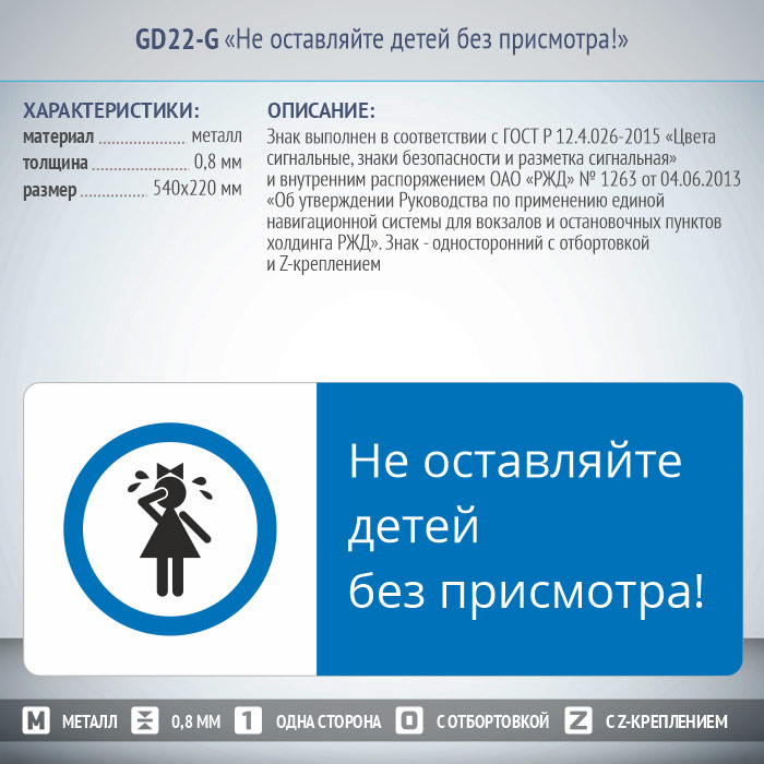 Знак «Не оставляйте детей без присмотра!», GD22-G (односторонний горизонтальный, 540х220 мм, металл, с отбортовкой и Z-креплением) в Кызыле купить