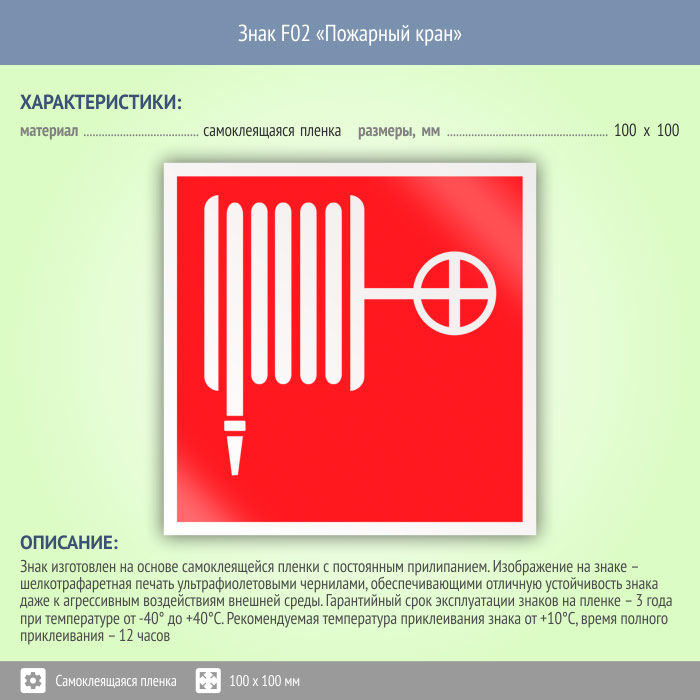 Знак F02 «Пожарный кран» (пленка, 100х100 мм) в Кызыле купить