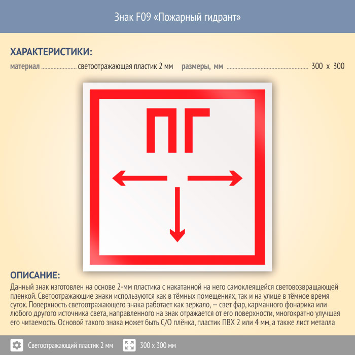 Знак F09 «Пожарный гидрант» (светоотражающий пластик, 300х300 мм) в Кызыле купить