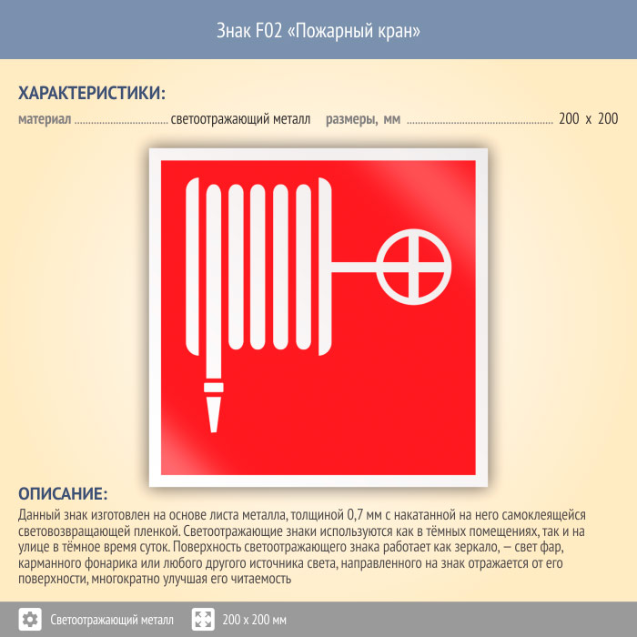 Знак F02 «Пожарный кран» (светоотражающий металл, 200х200 мм) в Кызыле купить