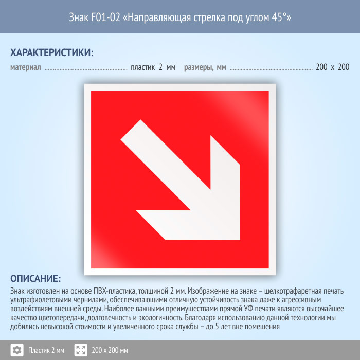 Знак F01-02 «Направляющая стрелка под углом 45°» (пластик, 200х200 мм) в Кызыле купить