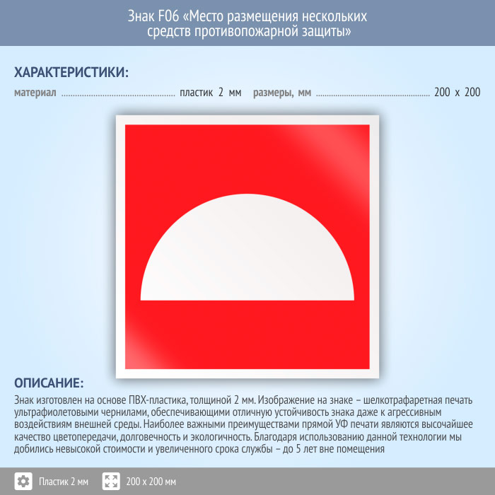 Знак F06 «Место размещения нескольких средств противопожарной защиты» (пластик, 200х200 мм) в Кызыле купить