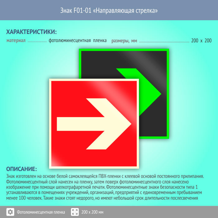 Знак F01-01 «Направляющая стрелка» (фотолюминесцентная пленка, 200х200 мм) в Кызыле купить