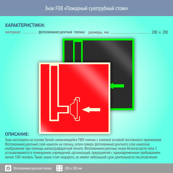 Знак F08 «Пожарный сухотрубный стояк» (фотолюминесцентная пленка, 200х200 мм) в Кызыле купить