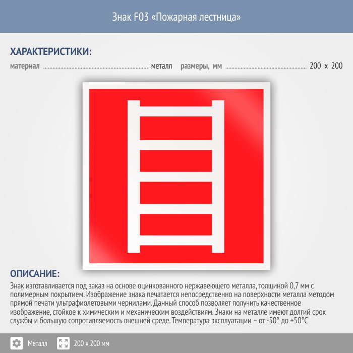 Знак F03 «Пожарная лестница» (металл, 200х200 мм) в Кызыле купить