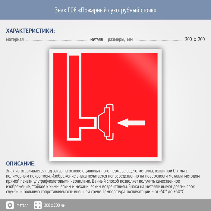 Знак F08 «Пожарный сухотрубный стояк» (металл, 200х200 мм) в Кызыле купить