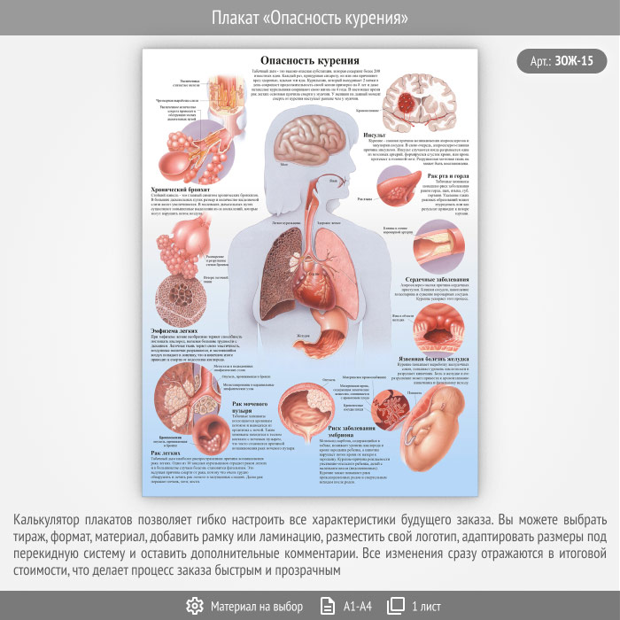 Плакат «Опасность курения» (ЗОЖ-15, 1 лист) в Кызыле купить
