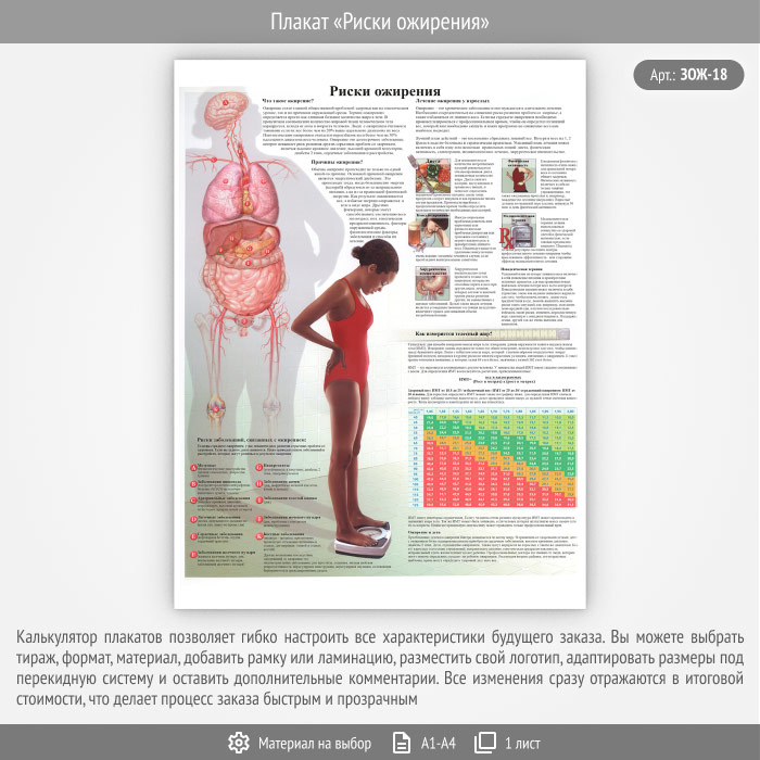 Плакат «Риски ожирения» (ЗОЖ-18, 1 лист) в Кызыле купить