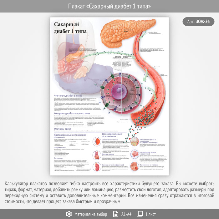 Плакат «Сахарный диабет 1 типа» (ЗОЖ-26, 1 лист) в Кызыле купить