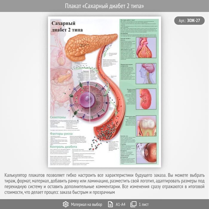 Плакат «Сахарный диабет 2 типа» (ЗОЖ-27, 1 лист) в Кызыле купить