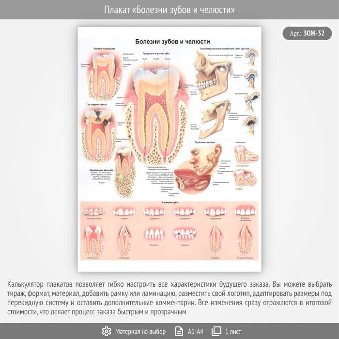Плакат «Болезни зубов и челюсти» (ЗОЖ-32, 1 лист) в Кызыле купить