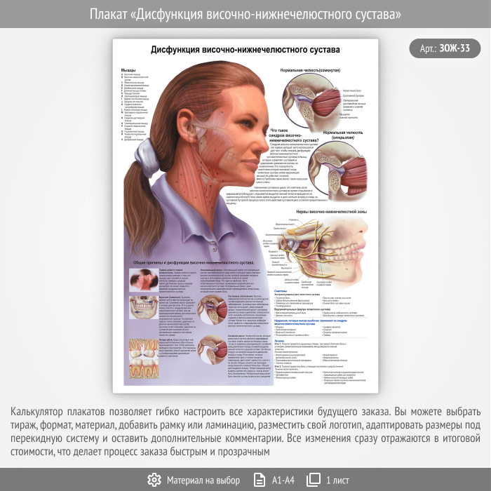 Плакат «Дисфункция височно-нижнечелюстного сустава» (ЗОЖ-33, 1 лист) в Кызыле купить