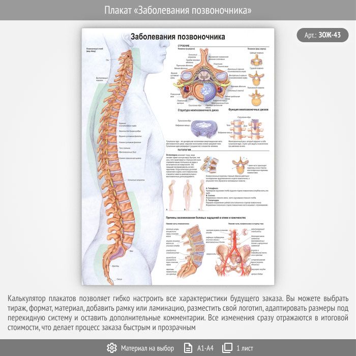Плакат «Заболевания позвоночника» (ЗОЖ-43, 1 лист) в Кызыле купить