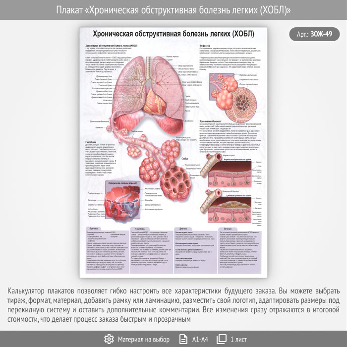 Плакат «Хроническая обструктивная болезнь легких (ХОБЛ)» (ЗОЖ-49, 1 лист) в Кызыле купить